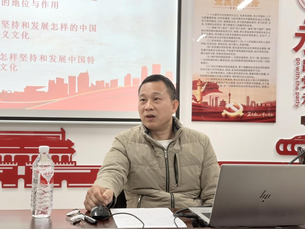 为深入学习贯彻习近平新时代中国特色社会主义思想,加强对新一批入党发展对象的培养、教育和考察,william威廉中文官网于2024年12月17日在2号实验楼B314教室为学院入党发展对象开展以“坚定文化自信,不断培育和创造新时代中国特色社会主义文化——深入学习领会习近平文化思想”为主题的专题党课,本次党课由公司党委书记磨有积老师主讲。