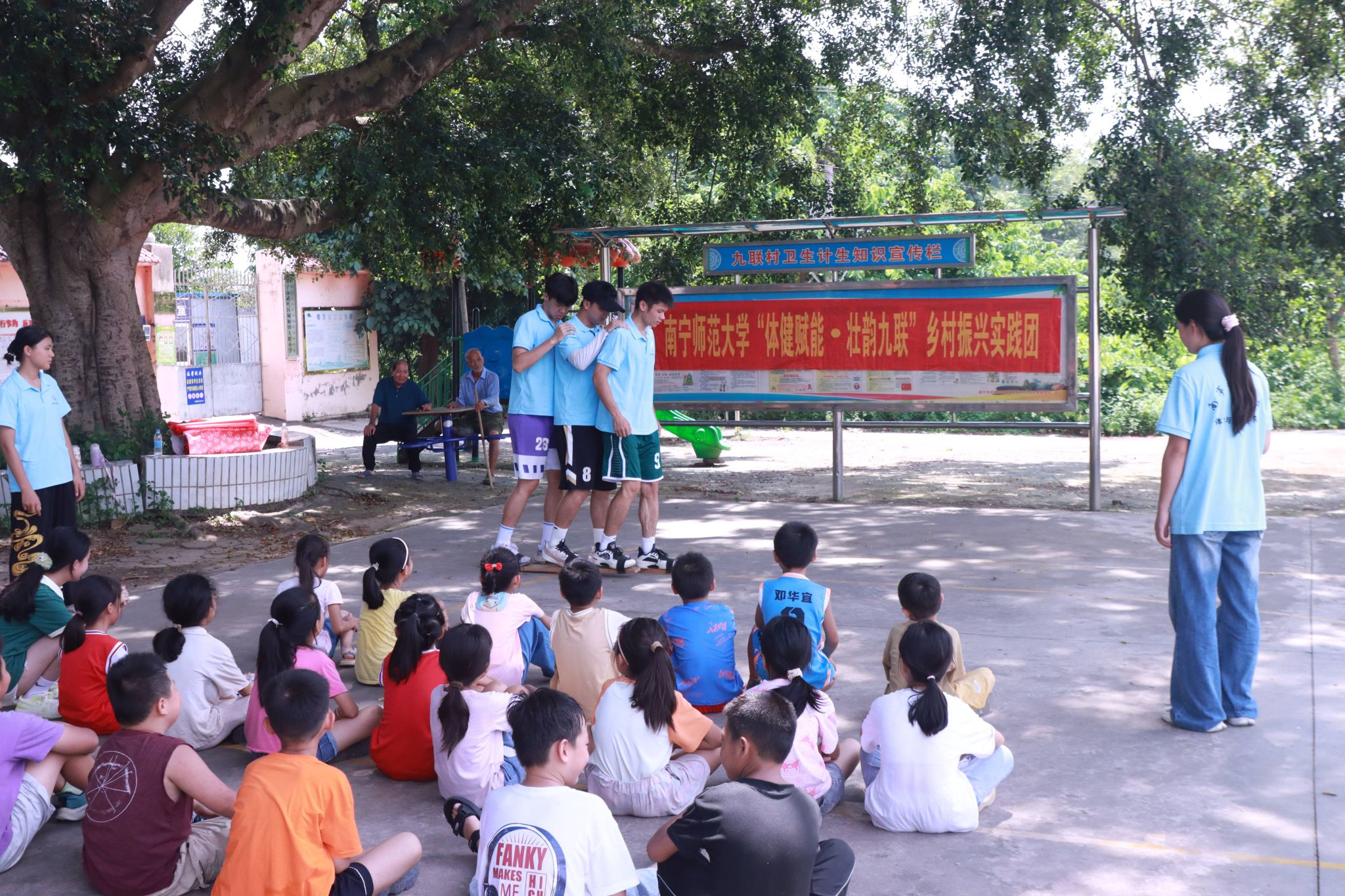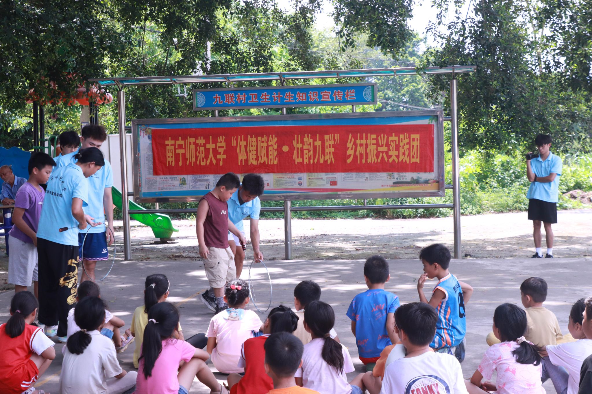 为弘扬民族传统文化,科普和推广少数民族传统体育项目,进一步丰富乡村小员工体育活动,7月16日,william威廉中文官网“体健赋能·壮韵九联”暑期实践团在南宁市武鸣区九联村开展少数民族传统体育科普课堂。此次科普课堂由实践团队员吴青青主持,实践团队员依次展示各项目,九联村小员工参加。