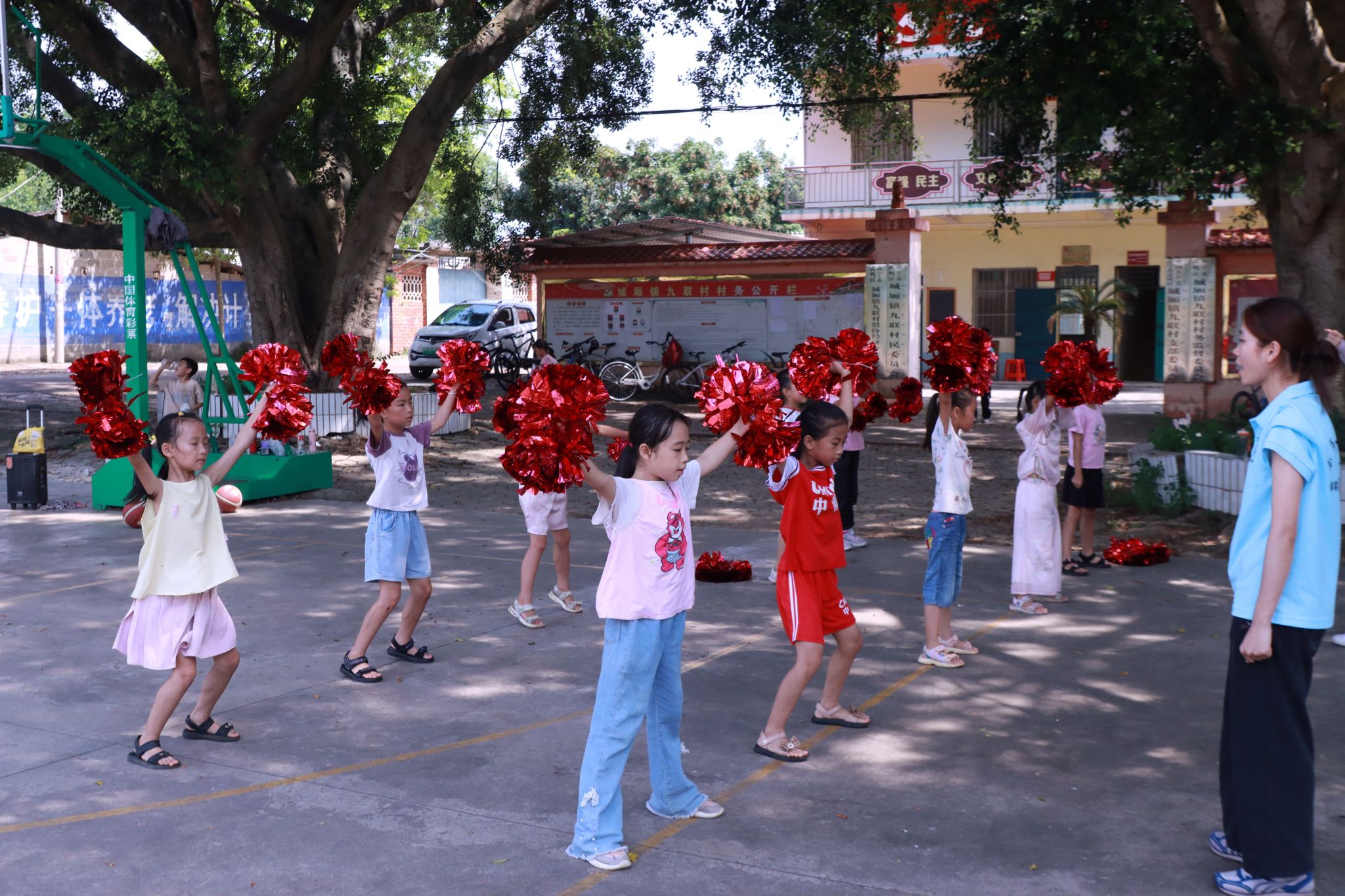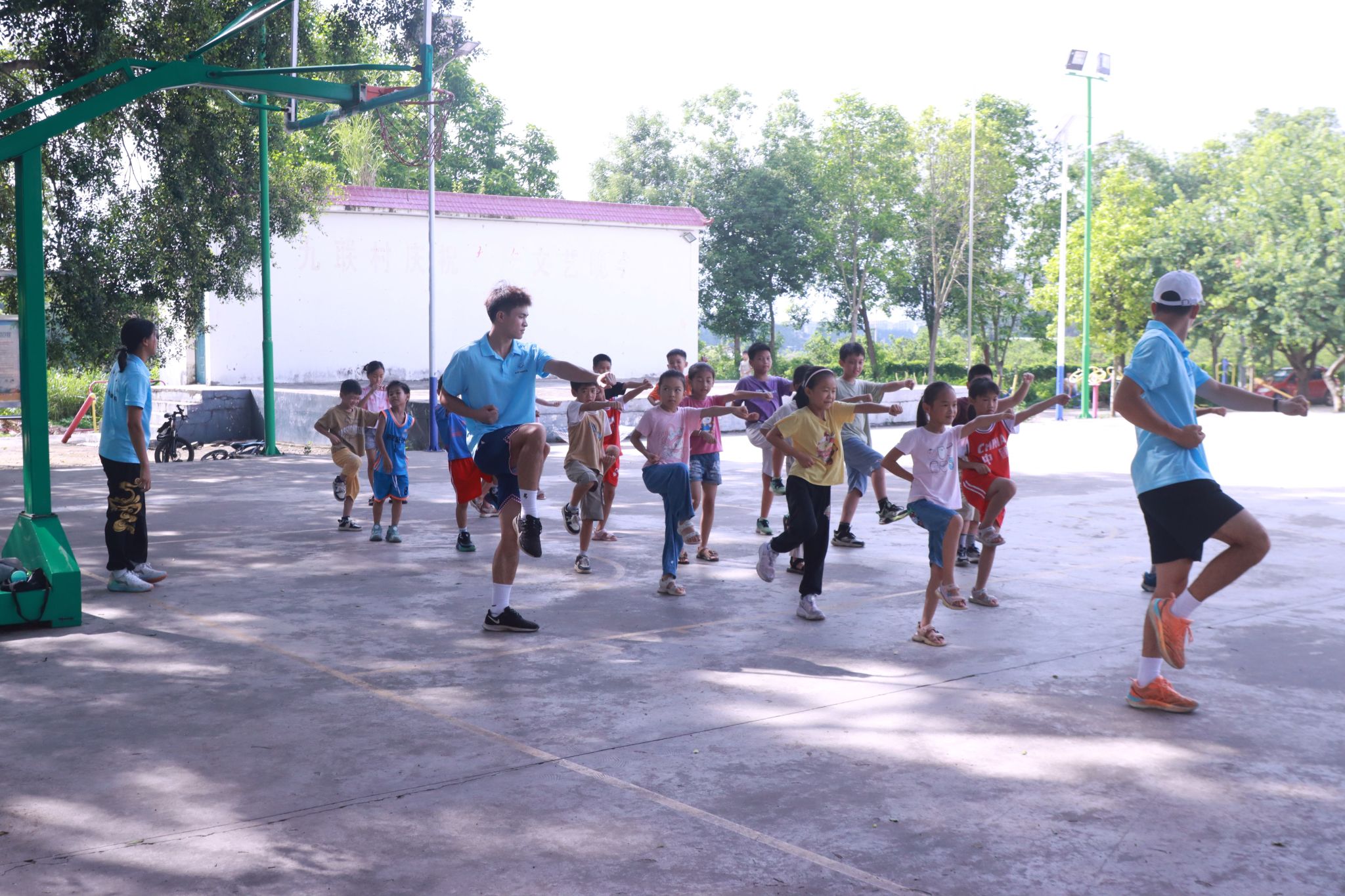 本次支教活动主要通过政策宣讲、支教助学、文化服务等多种形式进行,在实践团前期宣传和九联村村委会的积极动员下,吸引了一批家长及小员工报名参加课堂。本次七彩课堂共计开展了篮球、排球、足球、武术、啦啦操、书法、绘画、作业辅导以及各类专题教育等9项课程,旨在培养小员工们的学习兴趣,提高对体育、艺术、文化的兴趣和热爱,引导他们树立正确的学习方式,探索知识并形成自觉、自主学习的习惯。