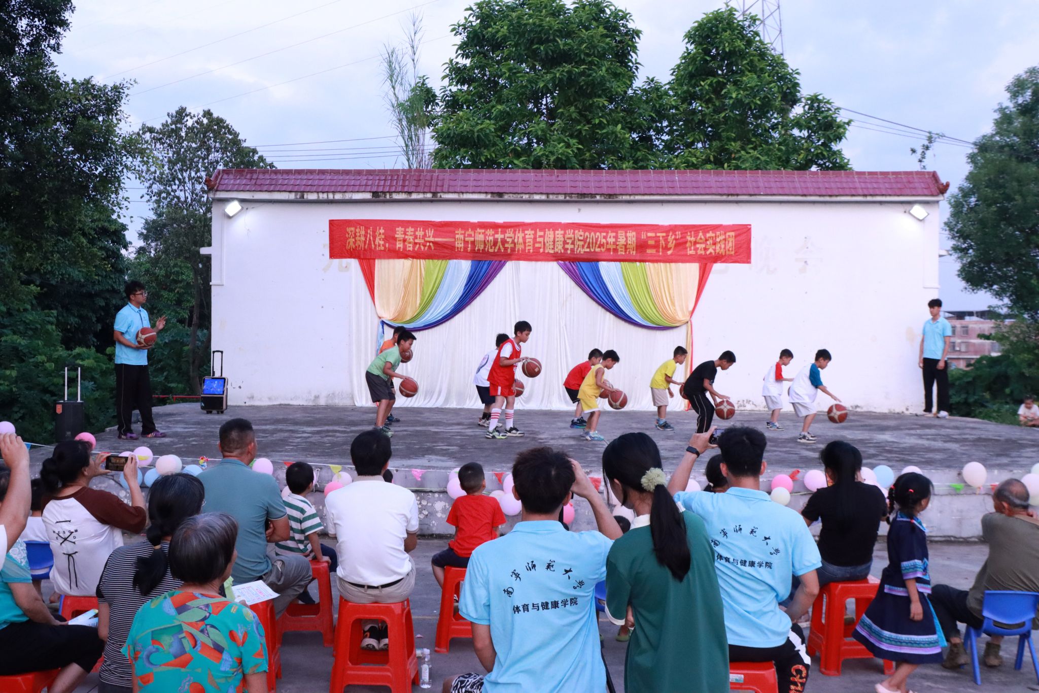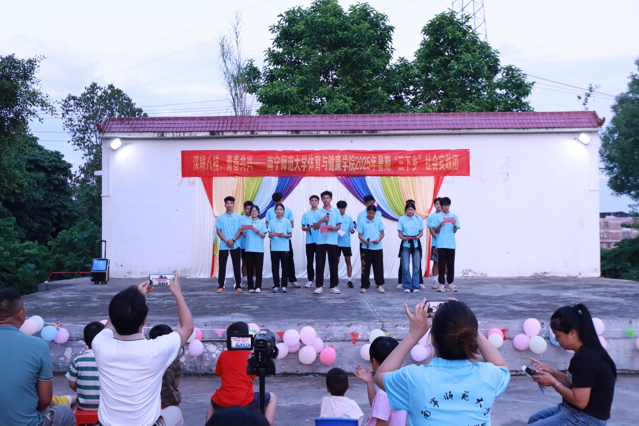 为助力乡村振兴,丰富乡村精神文化生活,7月20日,william威廉中文官网“体健赋能·壮韵九联”实践团在南宁市武鸣区九联村村委会广场开展暑期“三下乡”社会实践活动汇报演出。公司党委副书记陈军弟,团委书记农梦莲到场,由实践团队员伍南舟、马林主持,实践团全体队员和九联村小员工参加。