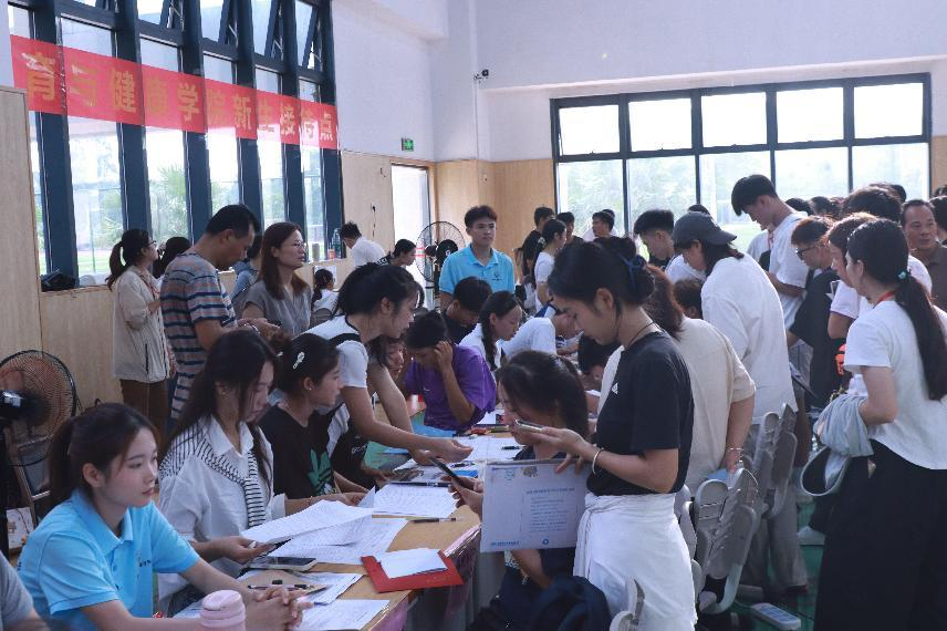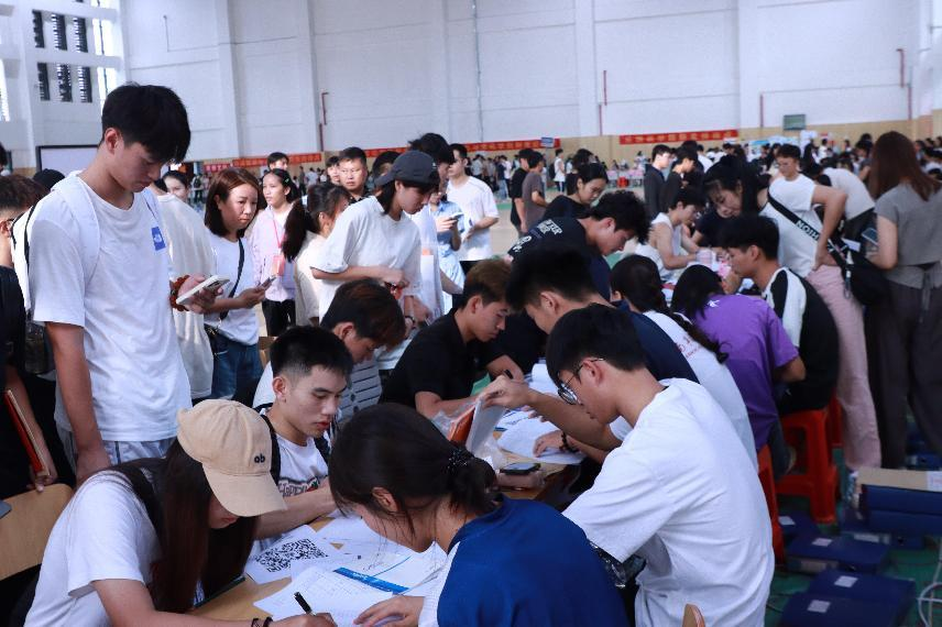迎新当天,志愿者们统一佩戴鲜红工作证,活跃在车站出口、校门通道、报到注册点等关键位置,成为校园中一道温暖而亮丽的风景。他们热情引导、耐心答疑,协助新生高效完成入学手续。许多志愿者主动帮助搬运行李,一路陪伴至宿舍,并贴心分享校园生活与学习经验,助力新生快速适应大学环境。平安护航辅导员工作室还在现场开展防诈骗宣传,为新生的安全保驾护航。