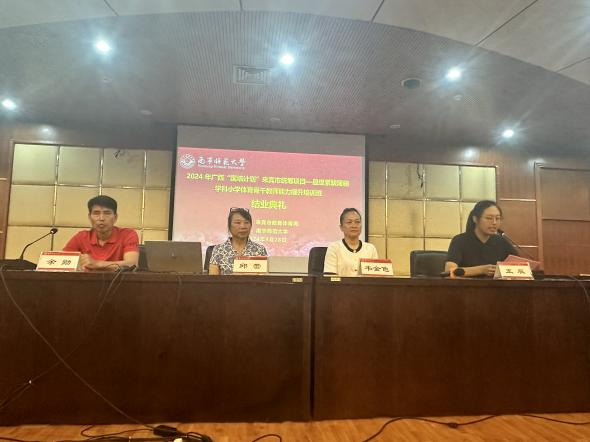 9月28日举行结业典礼。学员代表围绕不同侧重点向与会领导、老师作汇报分享。邱蕾教授对学员代表们的精彩分享给予充分肯定,并对全体学员顺利结业表达衷心祝贺。欧秀兰老师针对大课间活动、课后服务、体育教学等方面遇到的实际困难向邱蕾、韦金色两位教授提出疑问,两位教授也有针对性地作出了解答,与会学员纷纷表示受益匪浅。