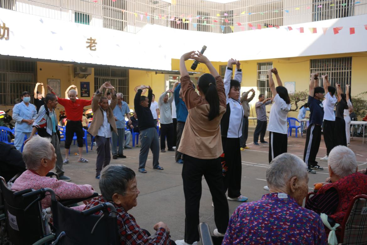 本次活动主要围绕关心慰问老人、开展健康行志愿服务、开展“桑榆”学习班,进行健康知识教育等多个主题进行。志愿者们首先对老人们进行慰问,与老人们进行交流,关心老人们的身体状况以及日常生活等,倾听故事;随后志愿者们通过真人情景剧表演为老人们进行反诈宣传,增强反诈意识,对提出的问题进行耐心解答;武术专项志愿者为老人们进行“八段锦”、“太极拳”的休闲健身体育项目表演,带领老人一起进行表演,帮助老人们增强体质,还齐心协力进行合力叠叠杯、色彩苍蝇拍等游戏环节;最后,志愿者为老人们带来歌曲表演《没有共产党就没有新中国》,当熟悉的旋律响起,老人们也情不自禁地开口歌唱,在歌声中顺利完成此次慰问活动。