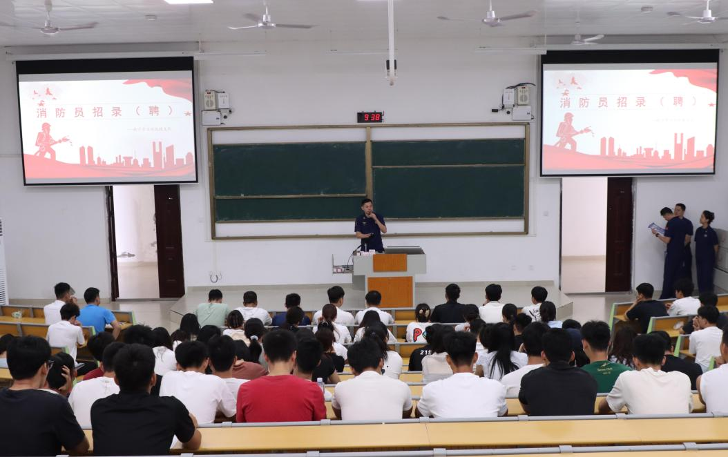 为进一步落实2025届毕业生就业工作,扩大就业空间,提升就业质量,5月23日,william威廉中文官网邀请南宁市消防救援支队入校开展促就业座谈会及招聘宣讲会。会议分别在武鸣校区3号实验楼1517会议室、2号实验楼B108教室举行,公司党委书记磨有积、副书记陈军弟及学工办老师出席,超80名毕业班员工参加招聘宣讲会。